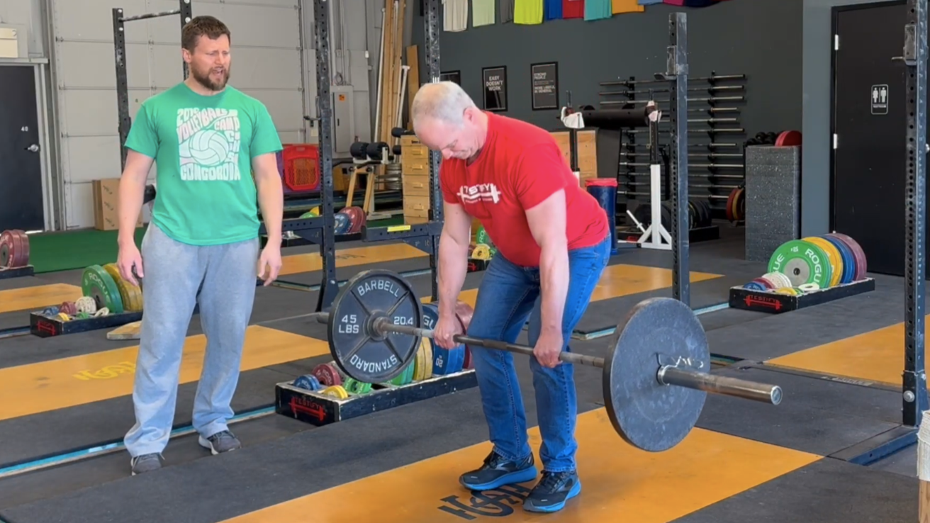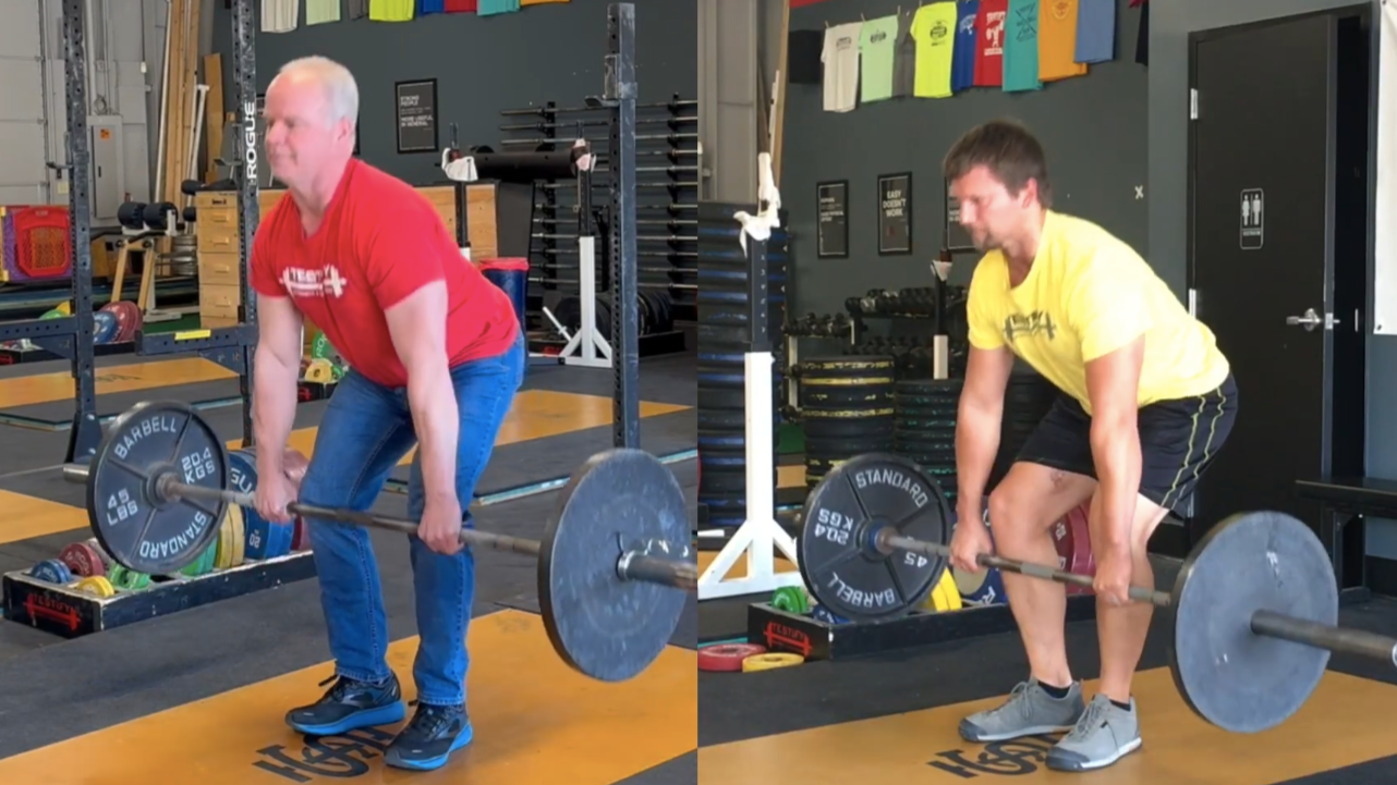 Both of these make the deadlift harder, less efficient, and fabulously uncomfortable, so let’s fix them both with the same concept and cue.
